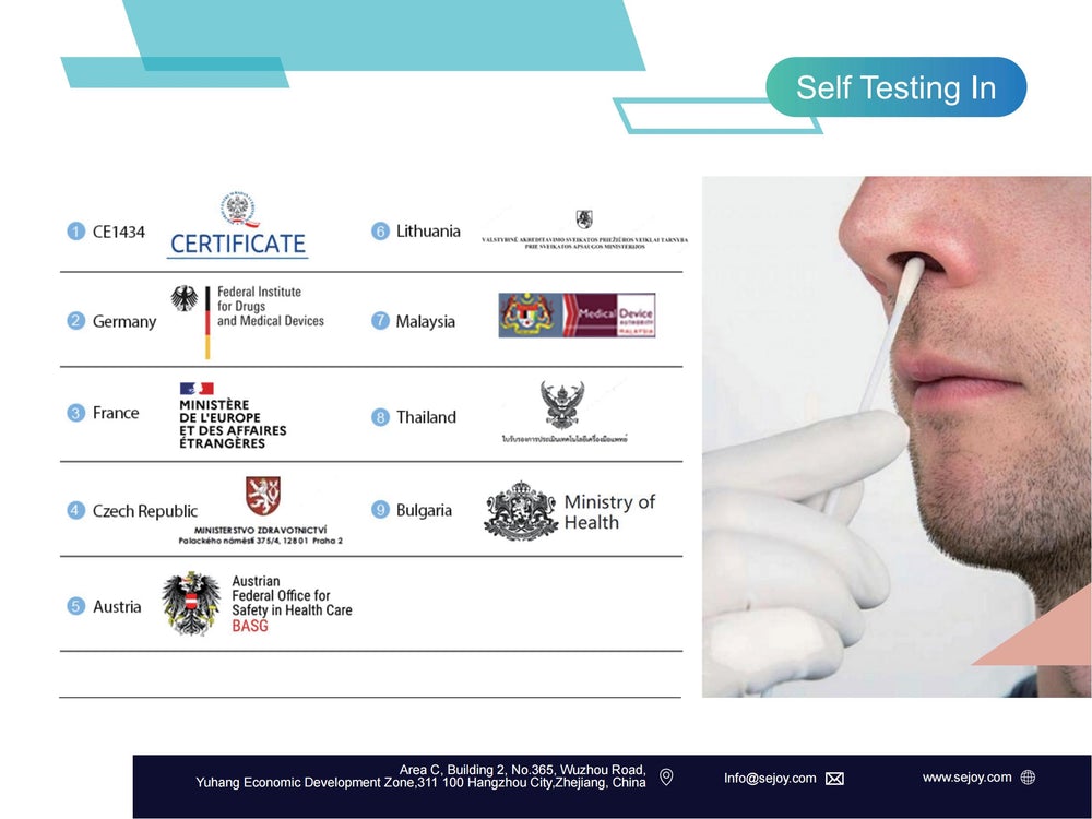 Le kit Sejoy est un auto-test de détection des protéines du SARS-COV-2, responsables du Covid-19. Il permet en 10 minutes, à partir d'un prélèvement nasal, de savoir si, à l'instant du test, une personne est infectée par le virus. Validé par l'ANSM et la HAS, ce test a une sensibilité de 97,1% et une spécificité de 99,2%. Il est certifié CE.