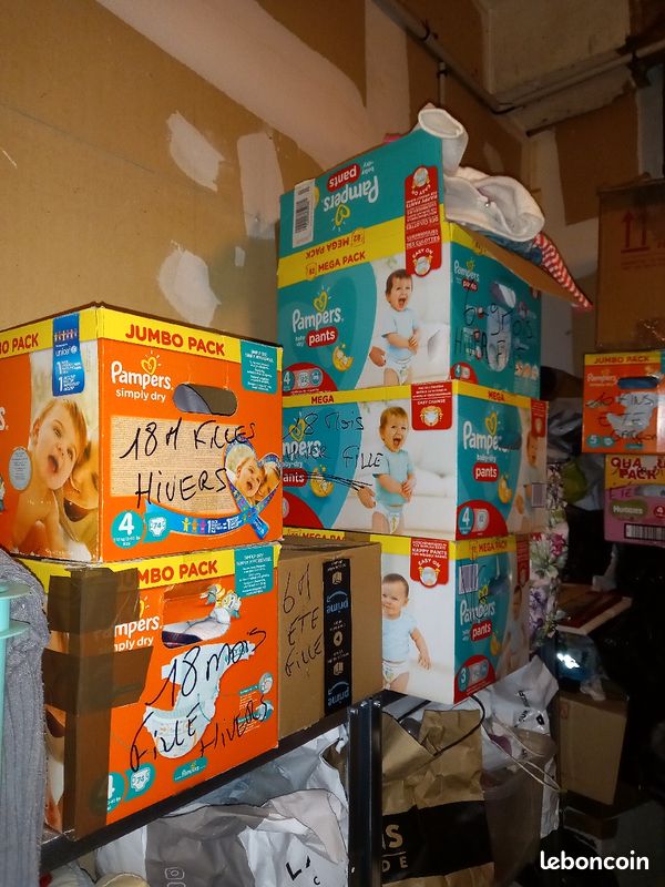 vente d'un gros lot de vetements bébés et enfants. environs 1000 a 1500 pieces. Tout a été verifié et pas de taches ou trous sur les vetements. Melange de vetements filles et garçons de differentes tailles