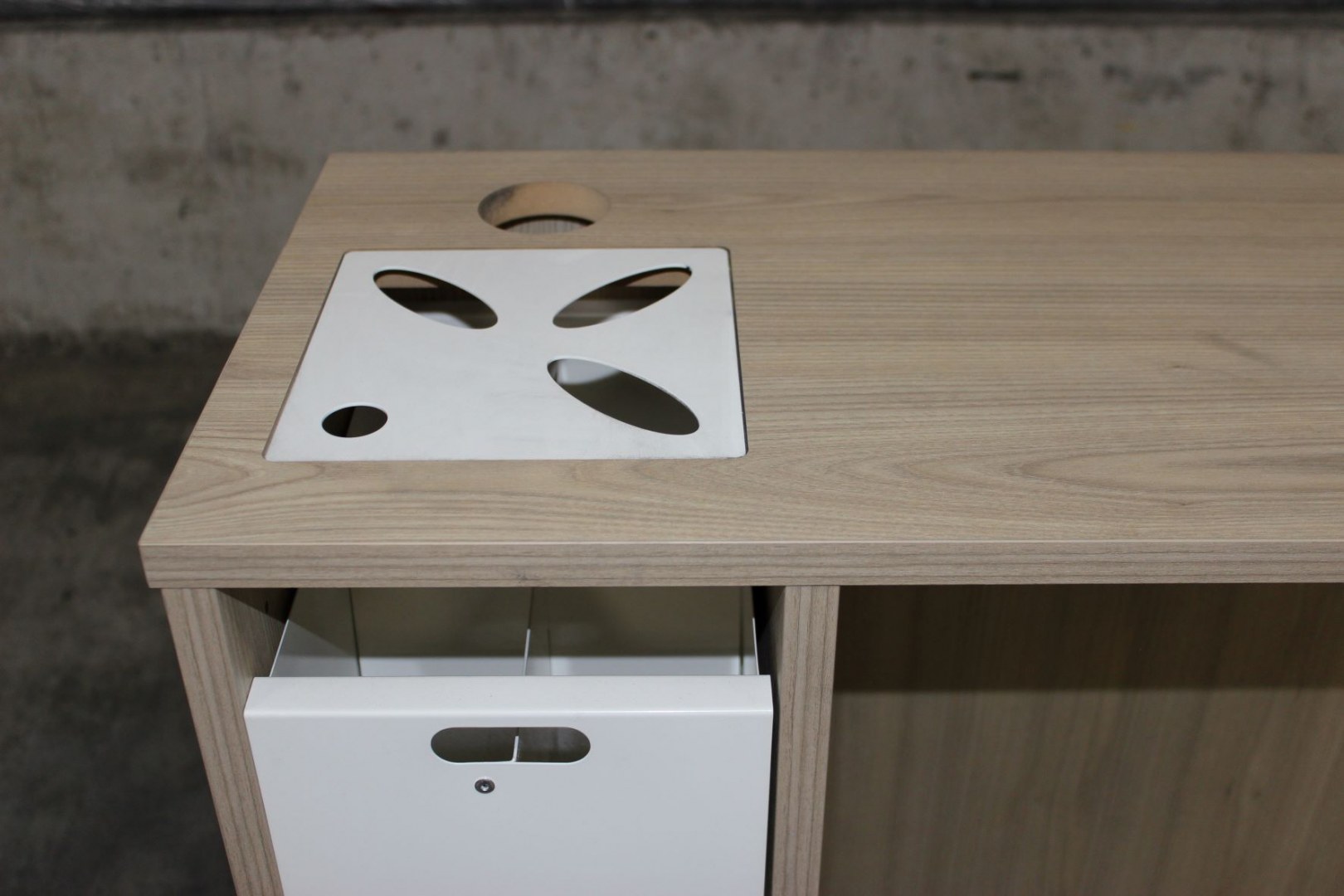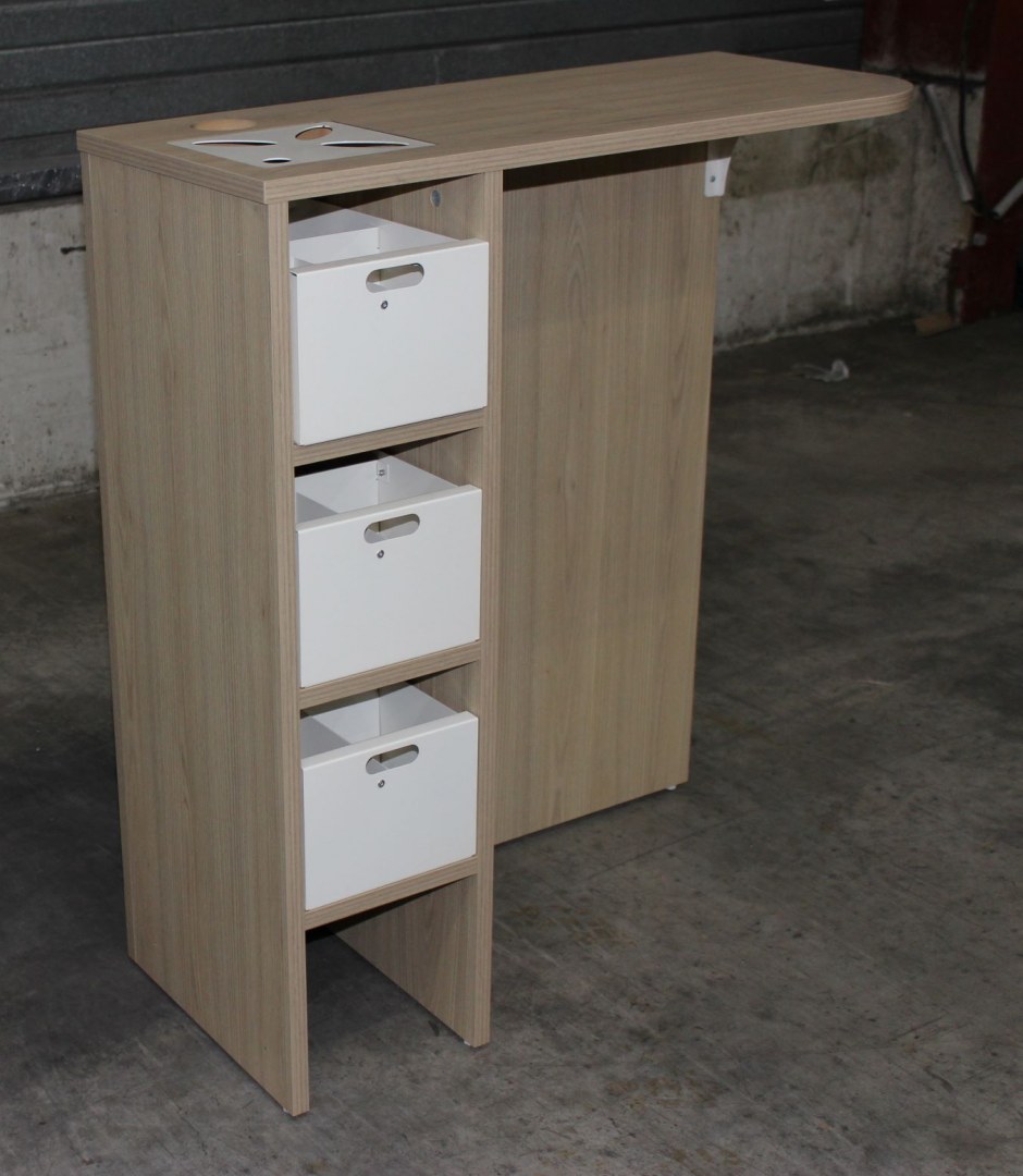 Colonne avec 3 tiroirs en acier peint en blanc dont un pour récupération des antivols