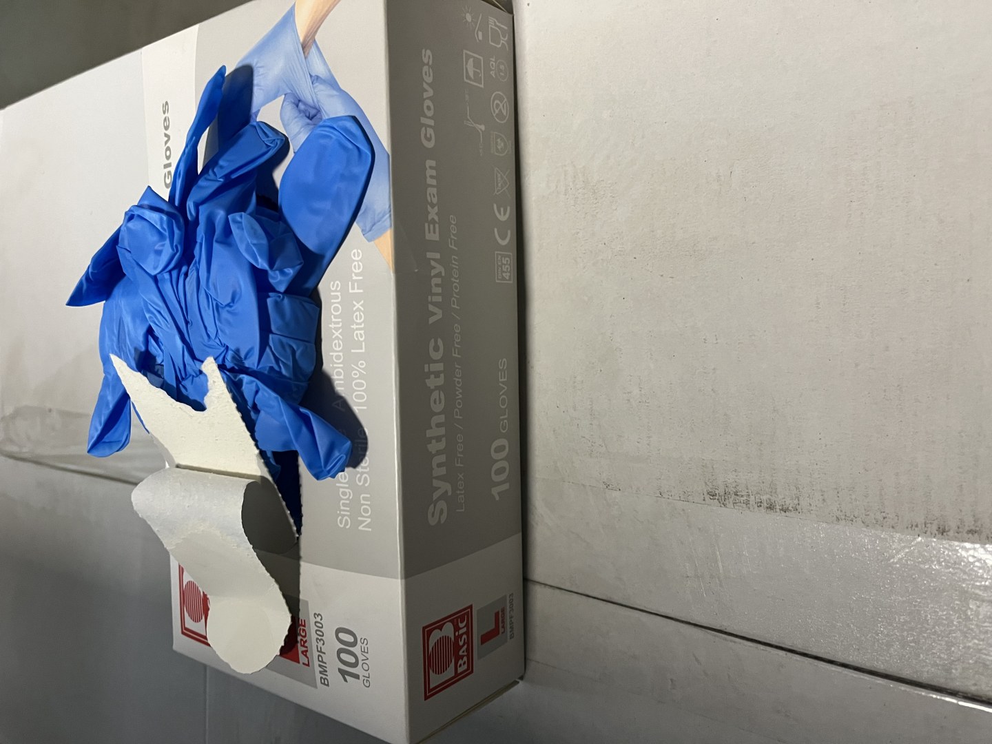 1. Gants vinyle bleu Exam Gloves taille M,L prix 2,75/100pc 54000/palette