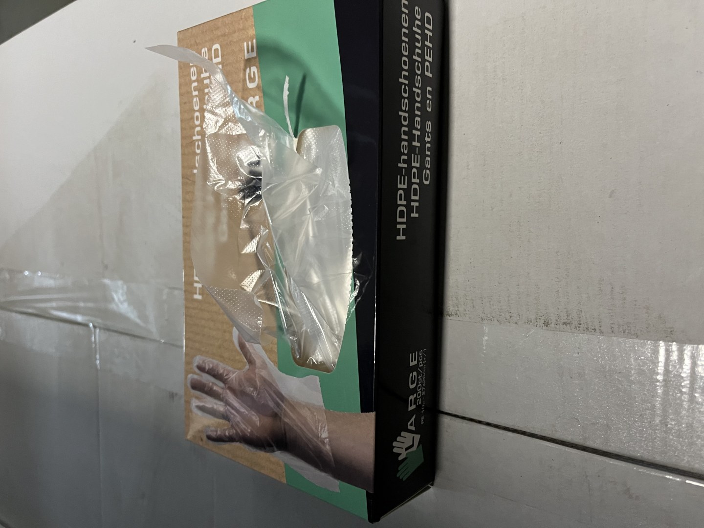 3. Gants en PEHD transparent 200pc/boite 0,50euro/100pc 240000/palette