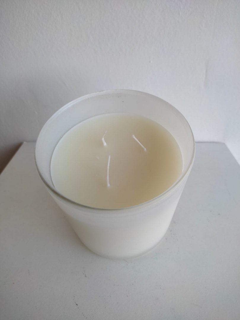 Bougies à base de cire 100% végétale 600 grammes et trois mèches pour environ 80 heures de combustion.