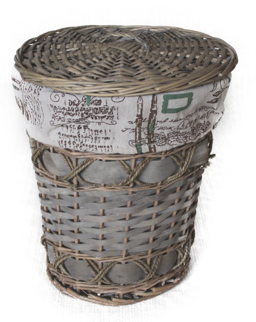 lot de 3 coffres à linge ronds en osier,intérieur en tissu imprimé