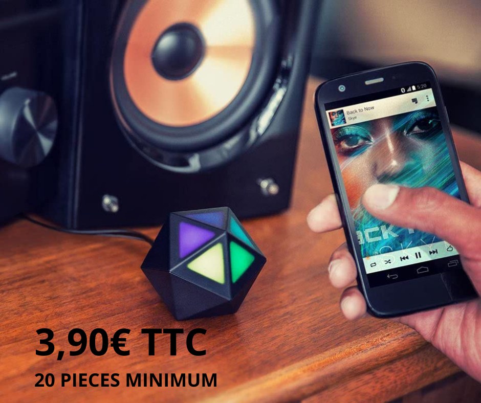 - Forme multifaces à 20 côtés (icosaèdre), dont 5 qui se colorent en fonction de l'utilisation de l'appareil.
