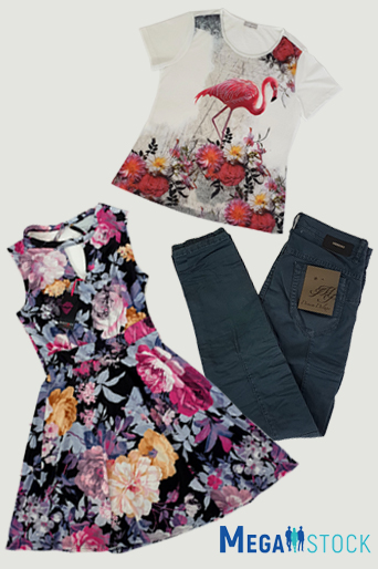 Stocklot comprend des jeans, des jupes, des pantalons, des robes décontractées et de soirée, des chemises, des hauts, des T-shirts, des sweatshirts, des sweats à capuche, des tricots légers, des pulls, etc.