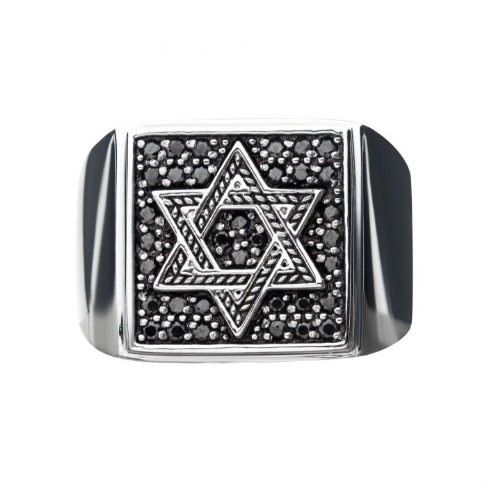 BAGUE HOMME ACIER ETOILE DE DAVID ET ZIRCONIUM FR22302