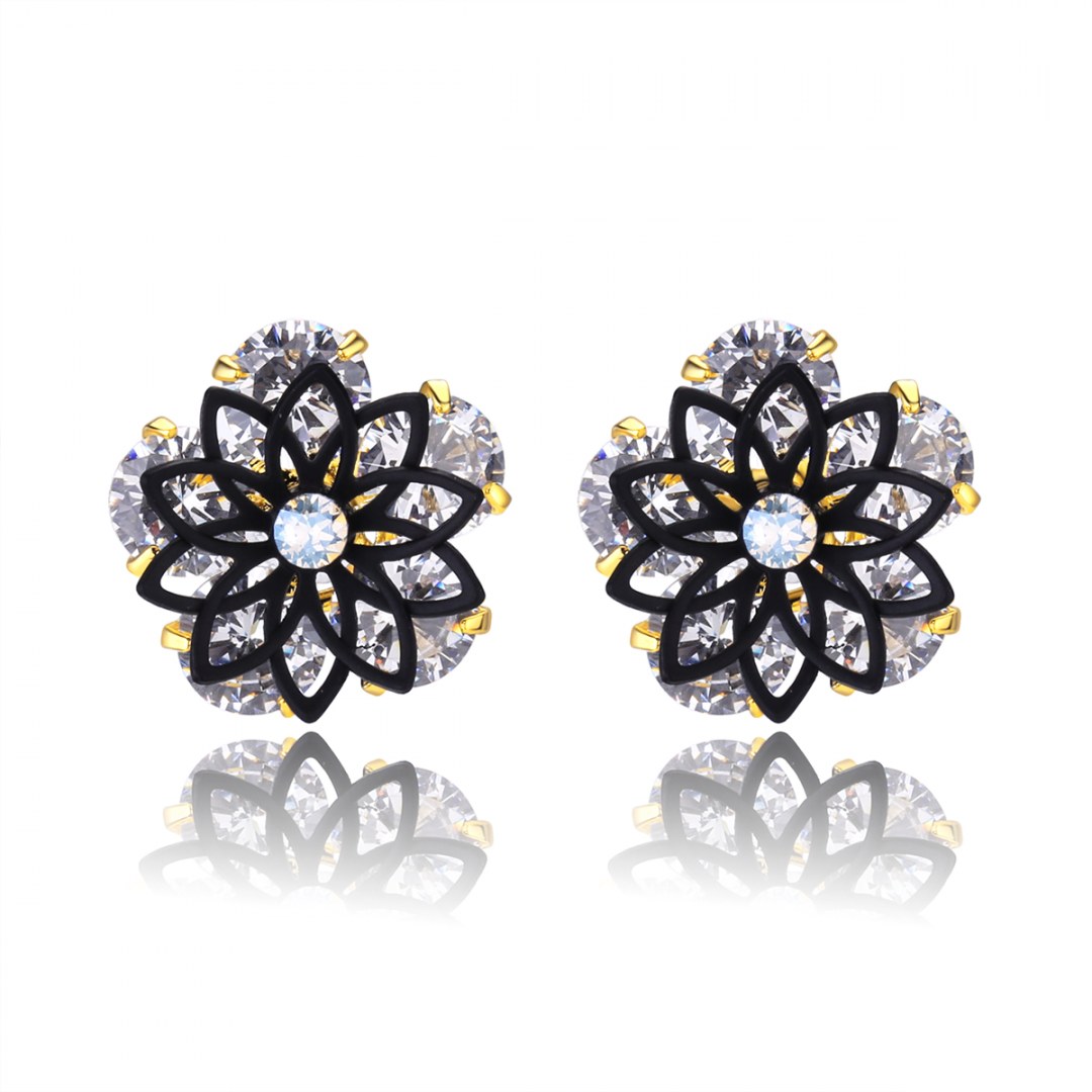 BOUCLES OREILLES MISS SWAN RHODIUM NOIR ET CRISTAL SWAROVSKI