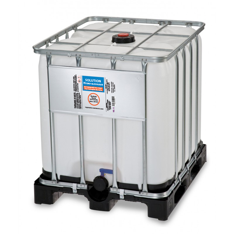 Bidons 5 litres de Gels et solutions hydro-alccoliques Normes EN14476 fabriqués en France à partir de matières premières françaises.
