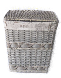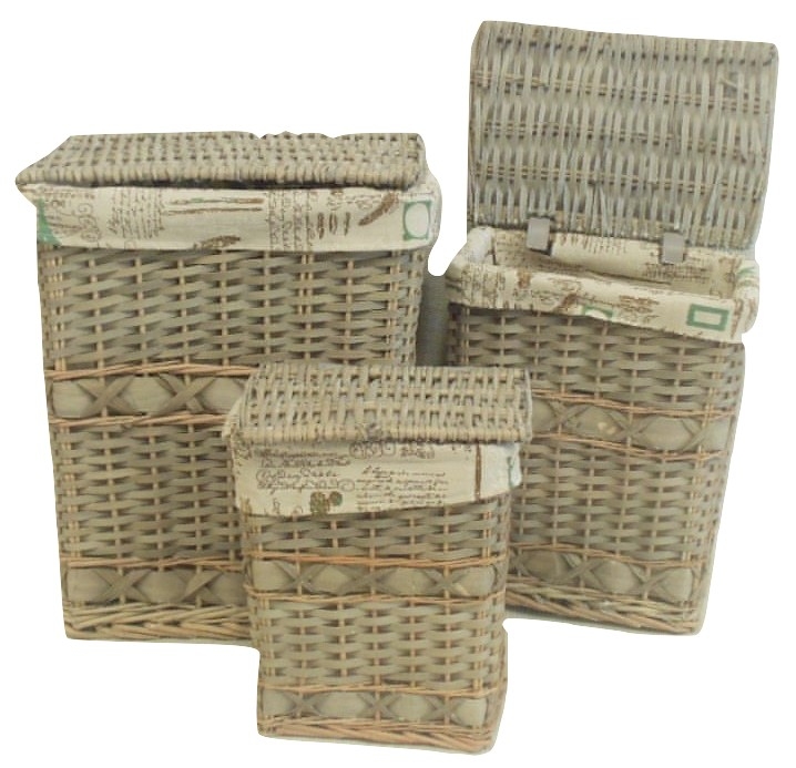 Lot de 3 coffres à linge rectangulaires en osier,intérieur en tissu imprimé.Dimensions le pm28x17x34 -mm = 35x23x43- le gm 42x32x52.REFERENCE 4002