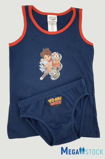 Ensembles de sous-vêtements pour garçons d'âges différents. L'ensemble comprend une culotte et un tee-shirt décoré de l'impression du dessin animé YoKai Clock.