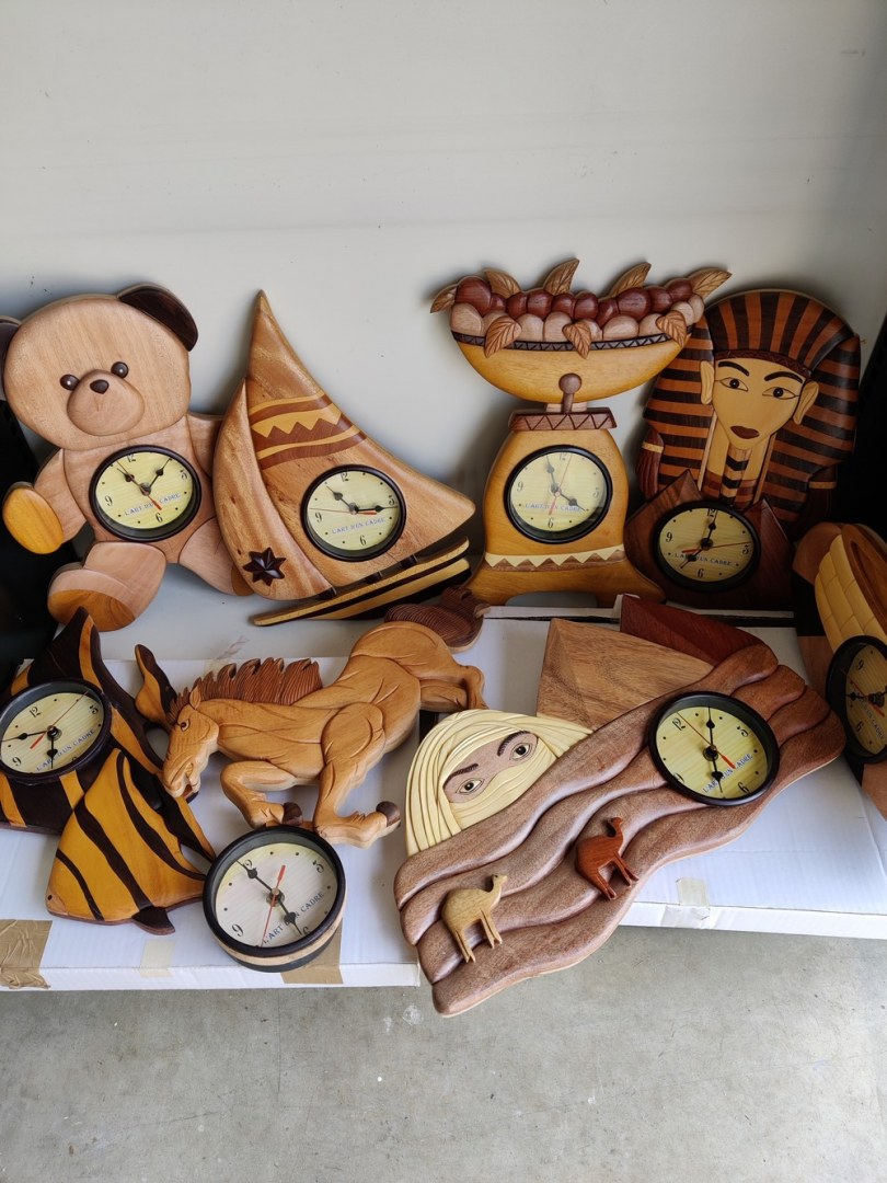 Destockage de motif en bois avec horloges mais aussi sans horloges.