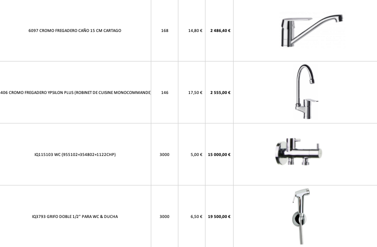 Nous sommes spécialisés dans le déstockage à l'export dans le domaine de la construction et du bricolage. En exclusivité, nous vous proposons un lot de 6 314 pièces de la marque Ramon Soler.