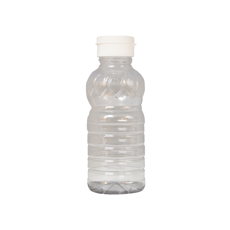 Flacon plastique transparent PET 250 ml avec son bouchon type Ketchup blanc.