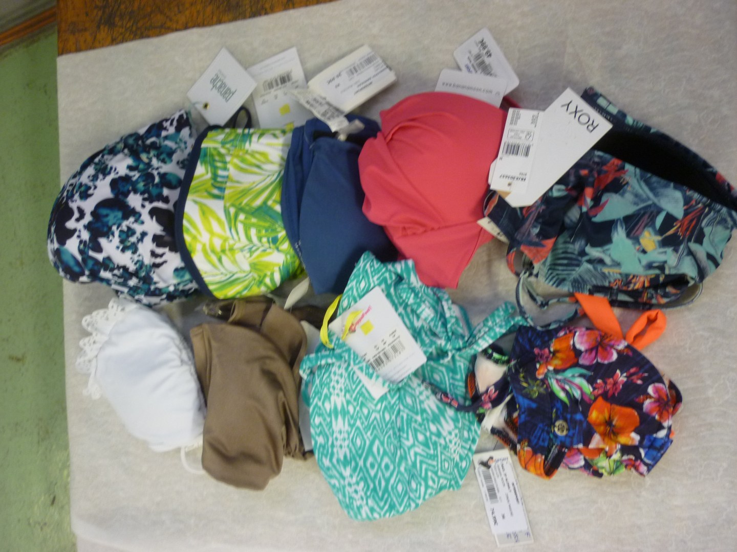 1 lot de 586 pièces de maillot de bain femme bikini de marque neuf , 1 pièce , 2 pièces , bas , haut , toute taille , collection 2021 , prix 1eur ttc pièce.