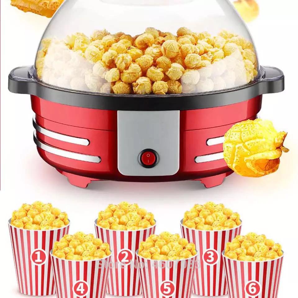 Machine à Popcorn, Électrique avec Plateau de Cuisson Détachable, Revêtement Antiadhésif, Bol de 5l Couvercle 2-en-1, Rouge