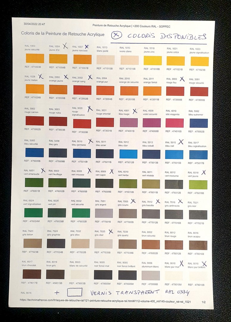 COLORIS DISPONIBLES : Uniquement les coloris figurant sur la photo ( 23 coloris + 1 verni transparent de protection )