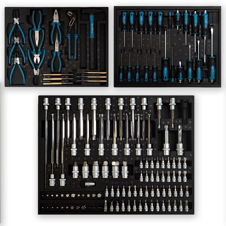 - 1 tiroir de douilles et 3 Cliquets avec rallonges (80 pièces)