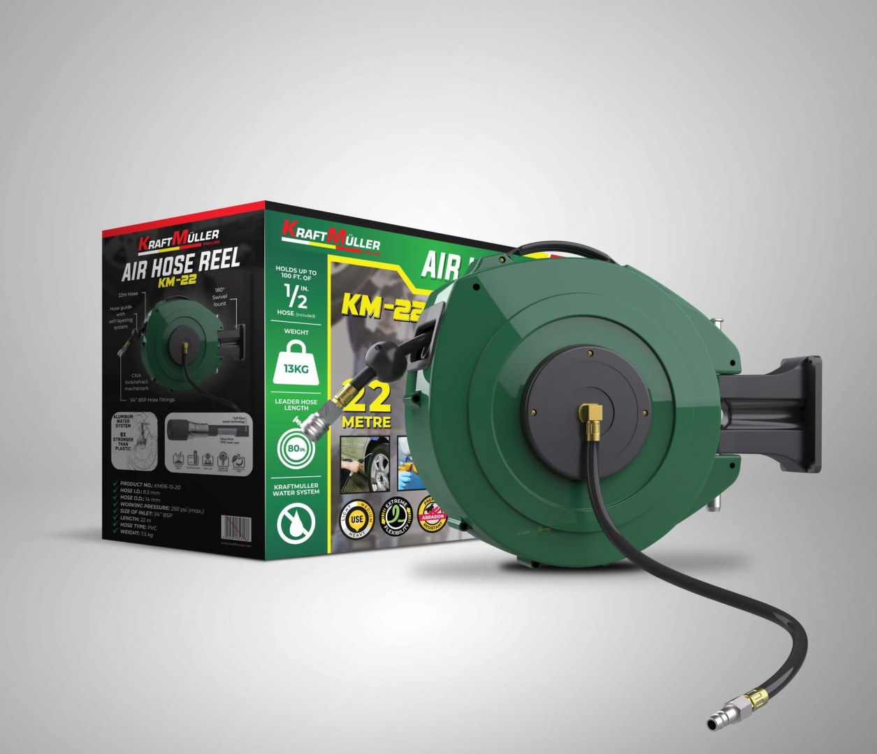 KRAFTMULLER enrouleur manuel de tuyau d'air (8.5mm x 12.5mm x 22M) utilisé dans les outils pneumatiques, afin de