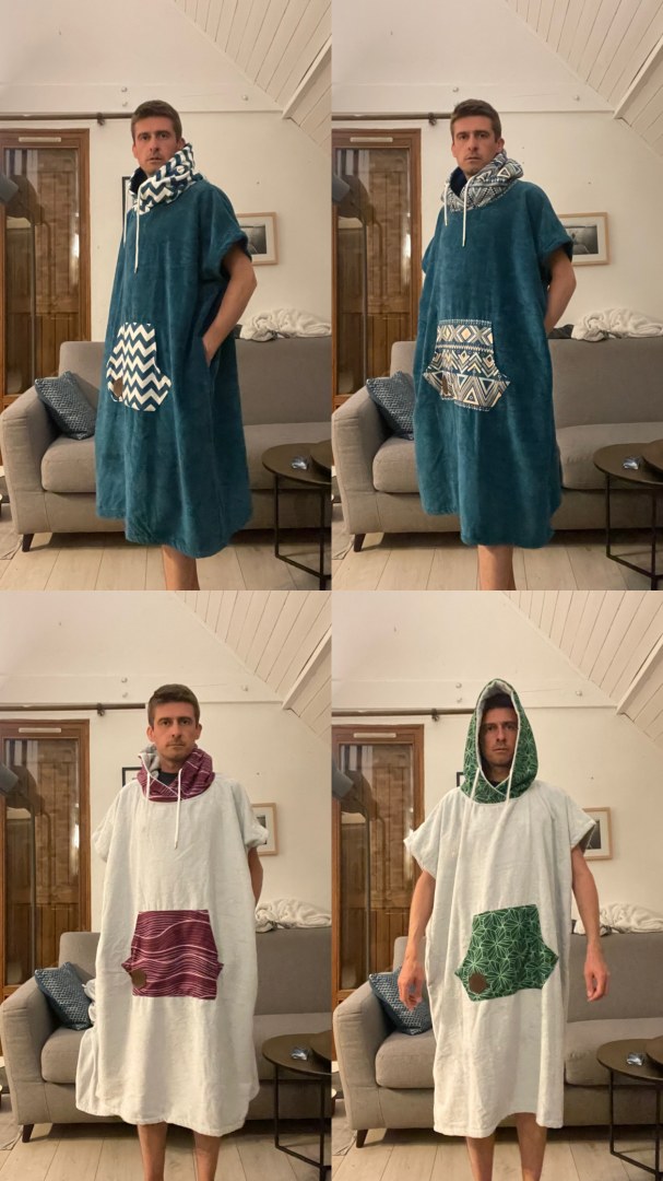 Poncho serviette adulte taille unique (114cm de haut, hors capuche).