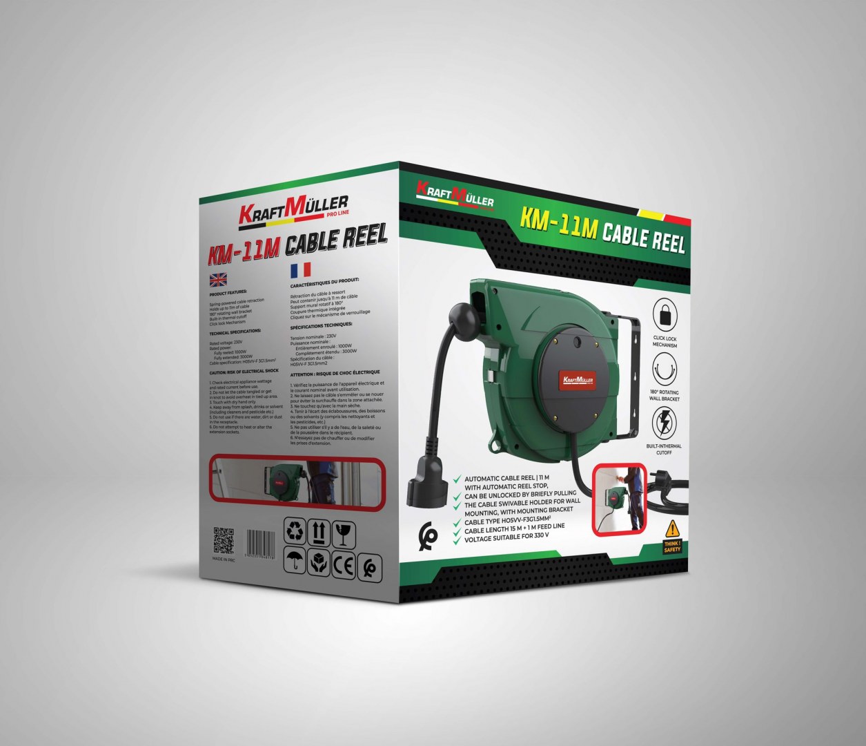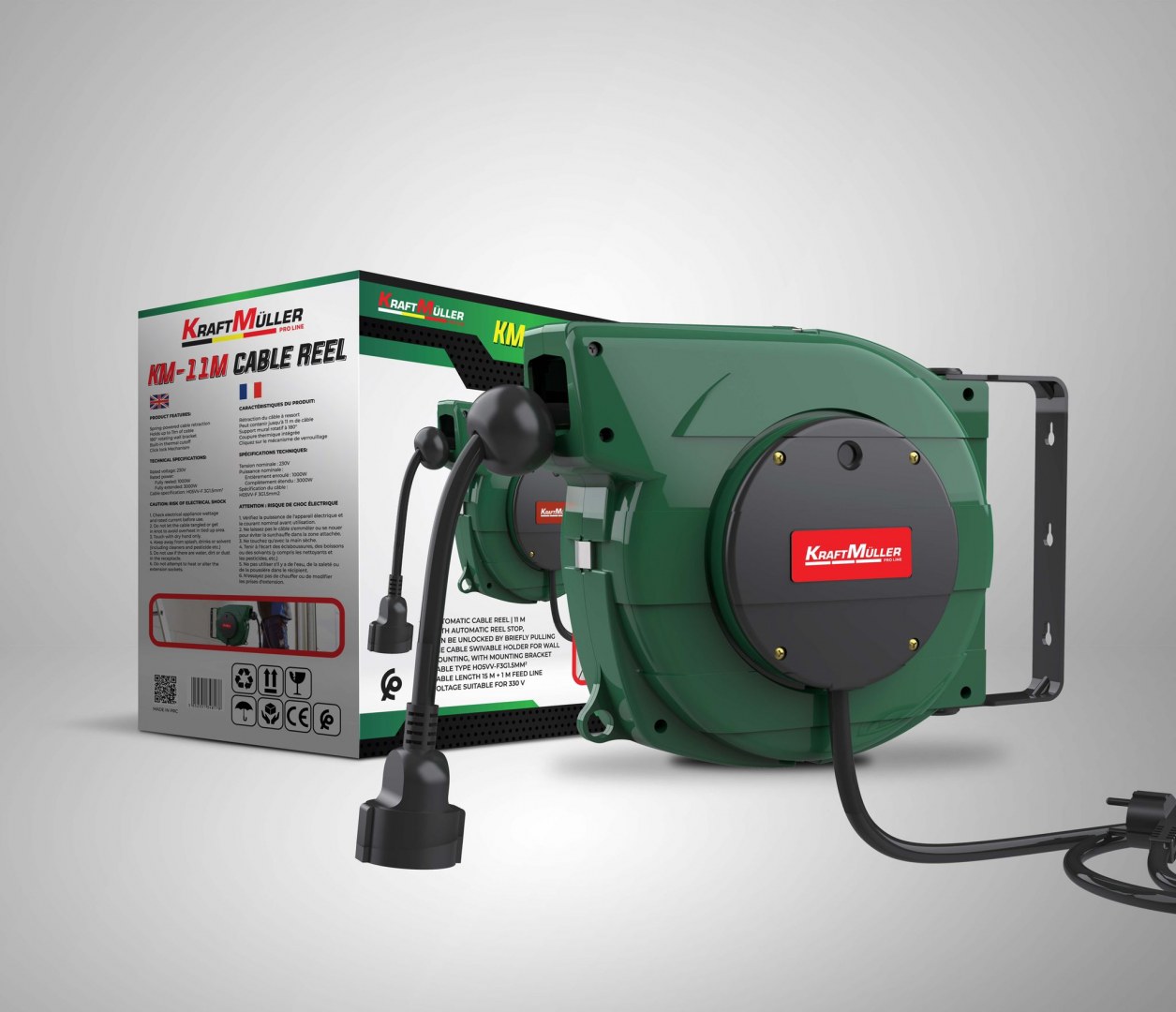 Faisant partie de la gamme KRAFTMULLER, ce produit a été testé par des ingénieurs pour sa fiabilité et sa constance. L'enrouleur est équipé d'une prise de courant conforme à la norme européenne pour plus de sécurité.