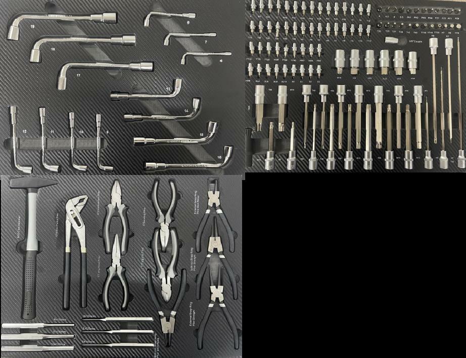 mm), 6 tiroirs sont déjà remplis d'outils :