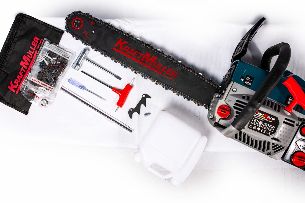 VENTE UNIQUEMENT EN GROS ET SEMI GROS!!!!La scie à chaîne thermique KRAFTMULLER-5800 fournit l'énergie nécessaire à la coupe du bois. Cette tronçonneuse à haute efficacité, résistante aux vibrations et aux vibrations, a une puissance de 58 cc, un moteur à essence monocylindre refroidi par air de 2 temps fournissant une puissance de 2,8 kW / 8 000 tr / min. Construite avec des matériaux de haute qualité et une conception professionnelle bien conçue, cette tronçonneuse offre une structure robuste et bien équilibrée qui offre des performances durables et fiables. Equipé d'une technologie économe en carburant pouvant économiser 20% de votre consommation d'essence. La poignée est conçue de manière ergonomique, avec une poignée antidérapante, une construction parfaitement équilibrée et confortable à utiliser. La barre et la chaîne à faible recul permettent d'améliorer les performances de coupe. Cette tronçonneuse professionnelle dispose d'un système de démarrage rapide vous permettant d'allumer facilement l'appareil tandis que le commutateur d'accélérateur de la soupape de sécurité augmente la sécurité et la fiabilité lors de son utilisation.