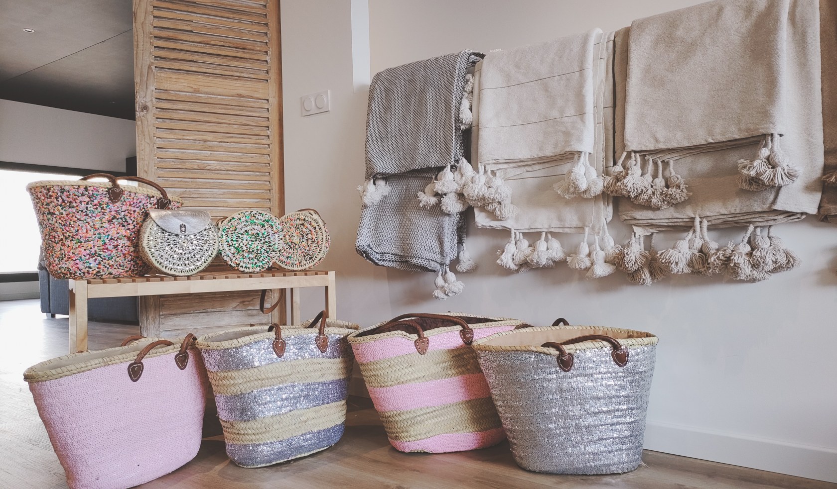paniers : la vie est belle, la vie en rose, à pompons, à franges, etc