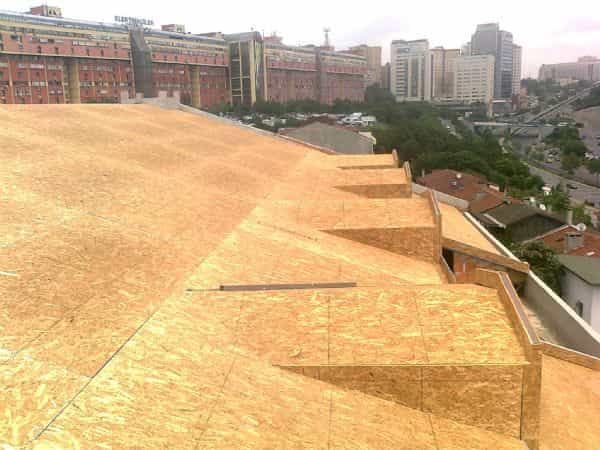 Aux plafonds, plancher plat sous la membrane, rez-de-chaussée,