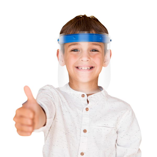 L'écran facial couvre largement le visage et fait barrière aux postillons. Idéal pour enfants et adultes.