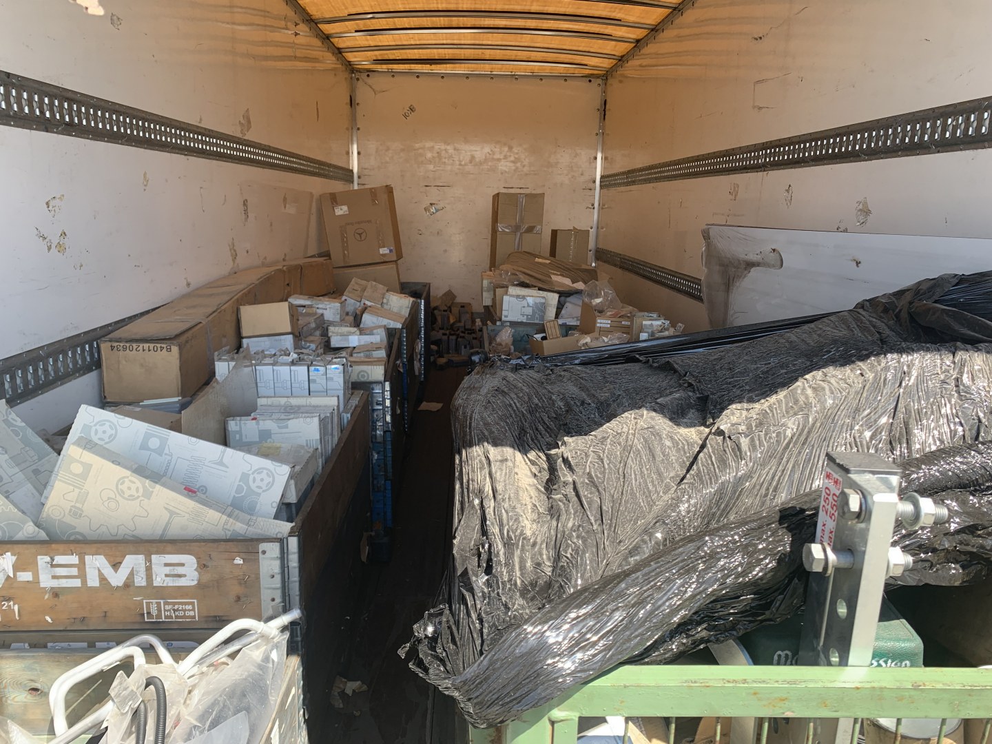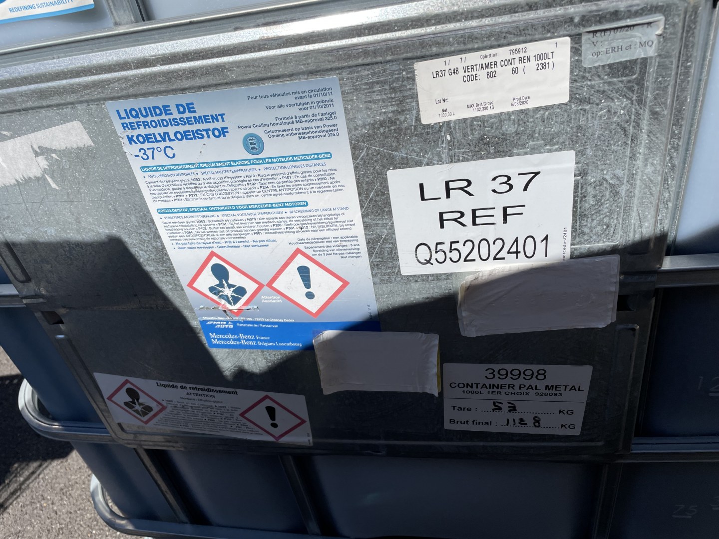 le lot comprend 11 palettes ou bacs essuies glaces , toutes sortes de filtres , ampoules , turbo complet de pieces pour vito sprinter jusqu au arocs etc... avec une cuve de 1000 l neuve de liquide de refroidissement -37...