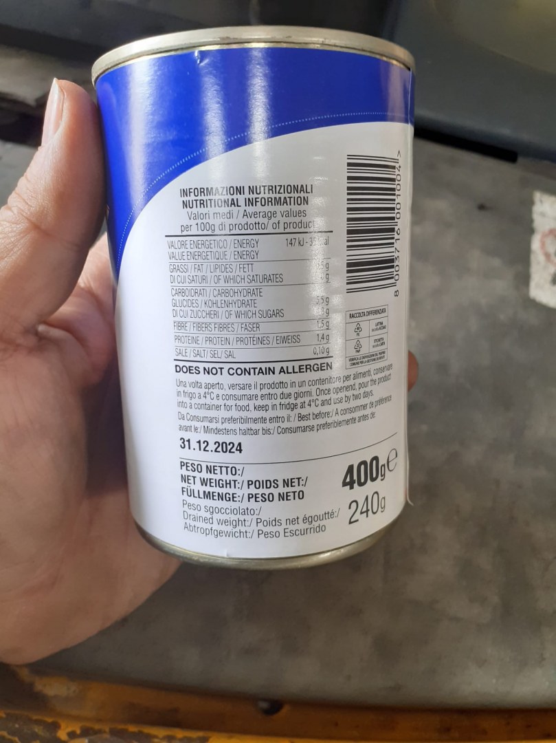 Conserve de Tomate entière pelée italienne 24 x 400 gr DLC 24-12-2024