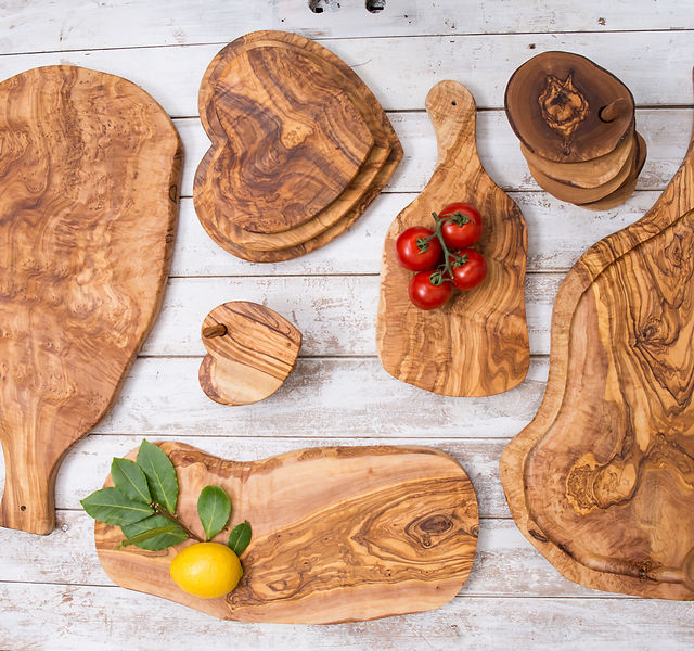 Notre gamme comporte les ustensiles de Cuisine de Bois d olivier: Cuillère, Mortiers, couvert , Panier et Coupe Fruit, Saladier ronds rustiques, Planche et Plateaux, Mortiers et pilons