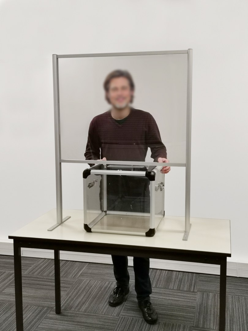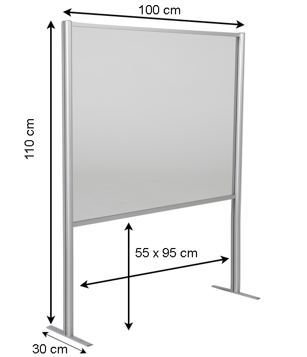 Plexiglass 100% transparent incassable avec une structure en aluminium élégante assurant une grande robustesse et stabilité en toutes circonstances, toutes installations et toutes utilisations, assis ou debout.
