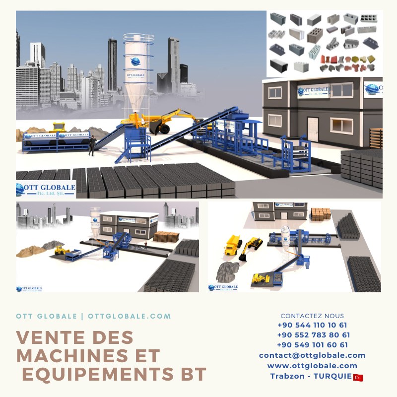 Machine pondeuse de brique OTT4A avec palette commercialisée par OTT GLOBALE. Si vous êtes intéressé par cette machine contactez-nous. La Machine pondeuse de brique OTT4A ou machine pondeuse a parpaing est multifonction. Cela signifie que la machine est capable de fabriquer différents types de produits à base de ciment, gravier, sable et eau.