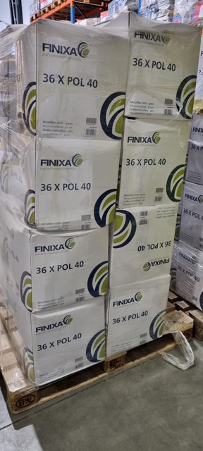 Finixa vert pack a 5 pcs 40x40cm 300g/m2 Total 5825 paquets de 5 pièces Finixa gris (fleece) pack a 4 pcs 40x40cm 300g/m2 Total 3630 paquets de 4 pièces 16 palettes au total 9455 packs. prix to1,10 eur par pack vert et 1,20 eur par ppack pour gris. Pour info via WhatsApp. Pas d'e-mail s'il vous plait