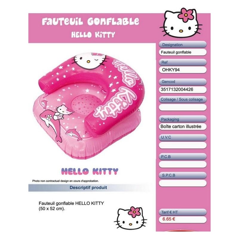 Fauteuil Gonflable Hello Kitty. Dimension : 50 x 52 cm