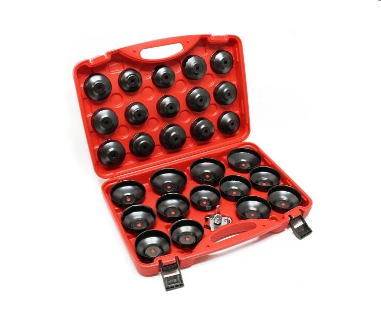 Un ensemble de 29 pièces se composant de coiffes, conçues pour le remplacement et la réparation des filtres à huile et constituant donc une aide indispensable pour divers travaux dans un atelier ou un garage. Grâce aux coiffes, les filtres à huile et les couvercles de boitier de filtre de presque tous les modèles de voiture, peuvent être installés et retirés rapidement et en toute facilité.