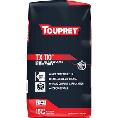 Destockage enduit rebouchage rapide intérieur Toutpret TX110 - 15kg.