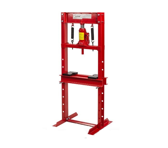 Cette presse hydraulique d'atelier, pouvant soutenir 12 tonnes, est conçue pour retirer et installer les bagues, les roulements, les rotules, les joints universels, les poulies et les engrenages.