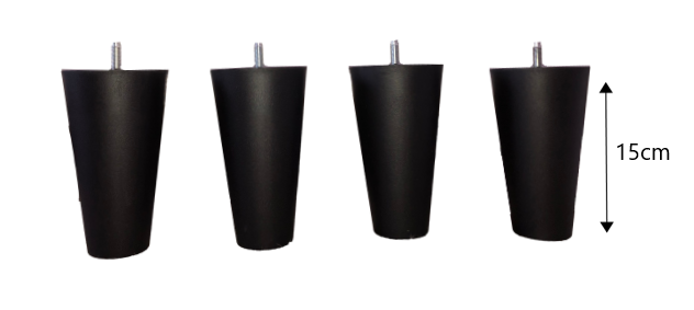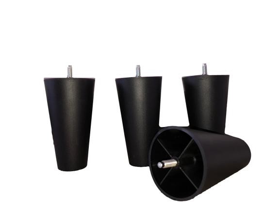Jeu de 4 pieds de lit fuseau en plastique de couleur noir, d'un diamètre de 8cm et d'une hauteur de 15cm