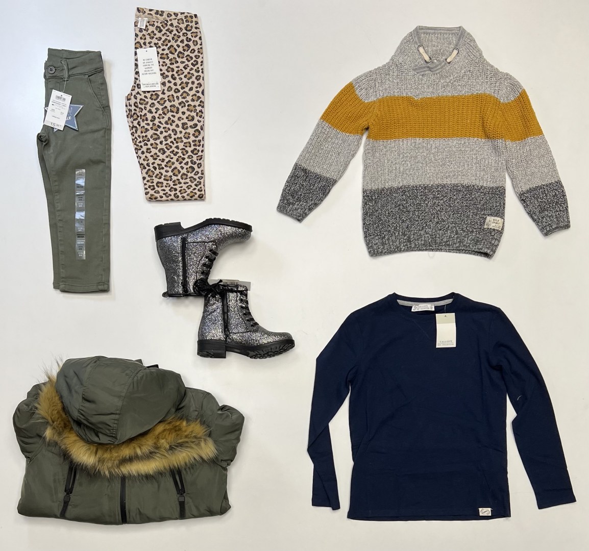 Stock de vêtements, chaussures, sous-vêtements et accessoires et articles ménagers.