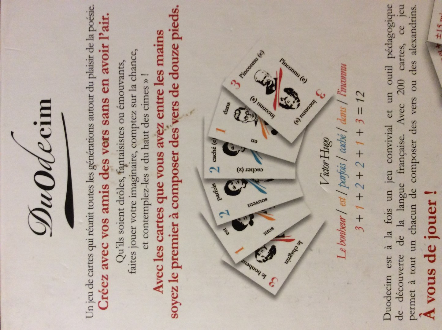 Jeux des sociétés : duodecim, jeux de lettre poétique pour adultes, amusant et cultivant.