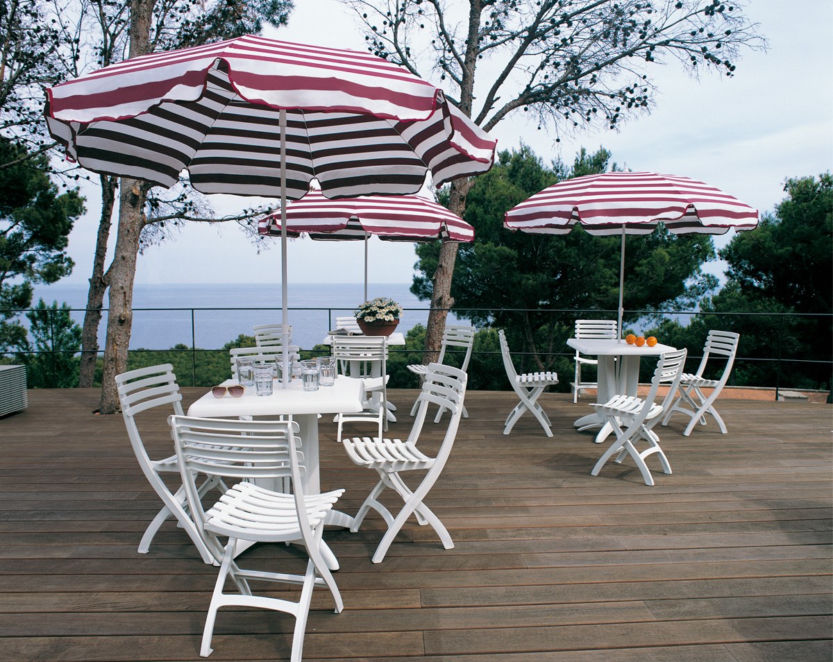 Chaise Square pliante à lattes en résine renforcée. Confortable, robuste et pratique. Empilable et pliable. Ideale pour les petits espaces ou pour ceux qui souhaitent la transporter facilement. Traitement anti-UV et anti-griffe et antichoc. Entretien facile. Evacuation naturelle des eaux de pluie. Peut être utilisée à l'intérieur et à l'extérieur. Convient parfaitement pour les restaurants, cafétérias, hôtels, centres de vacances, salles de fêtes. Recyclable.