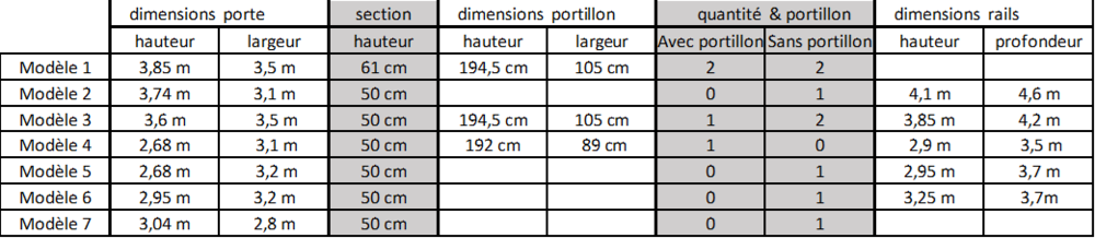 Modèles et dimensions : voir tableau récapitulatif dans les photos