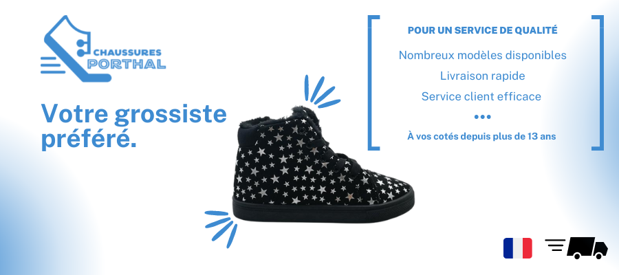 Depuis 13 ans Chaussures-Porthal propose un large choix de chaussure, notre entreprise est basée à Lyon, vous pouvez visiter notre site marchand pour consulter les articles en stock ou par email et telephone pour avoir plus d'informations.
