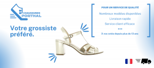 Depuis 13 ans Chaussures-Porthal propose un large choix de chaussure, notre entreprise est basée à Lyon, vous pouvez visiter notre site marchand pour consulter les articles en stock ou par email et telephone pour avoir plus d'informations.