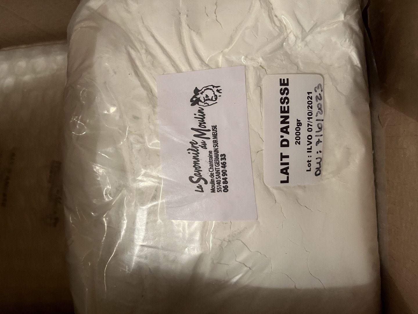 Je vends 10 kilos de poudre de lait d'ânesse venant de la savonnière du Moulin.