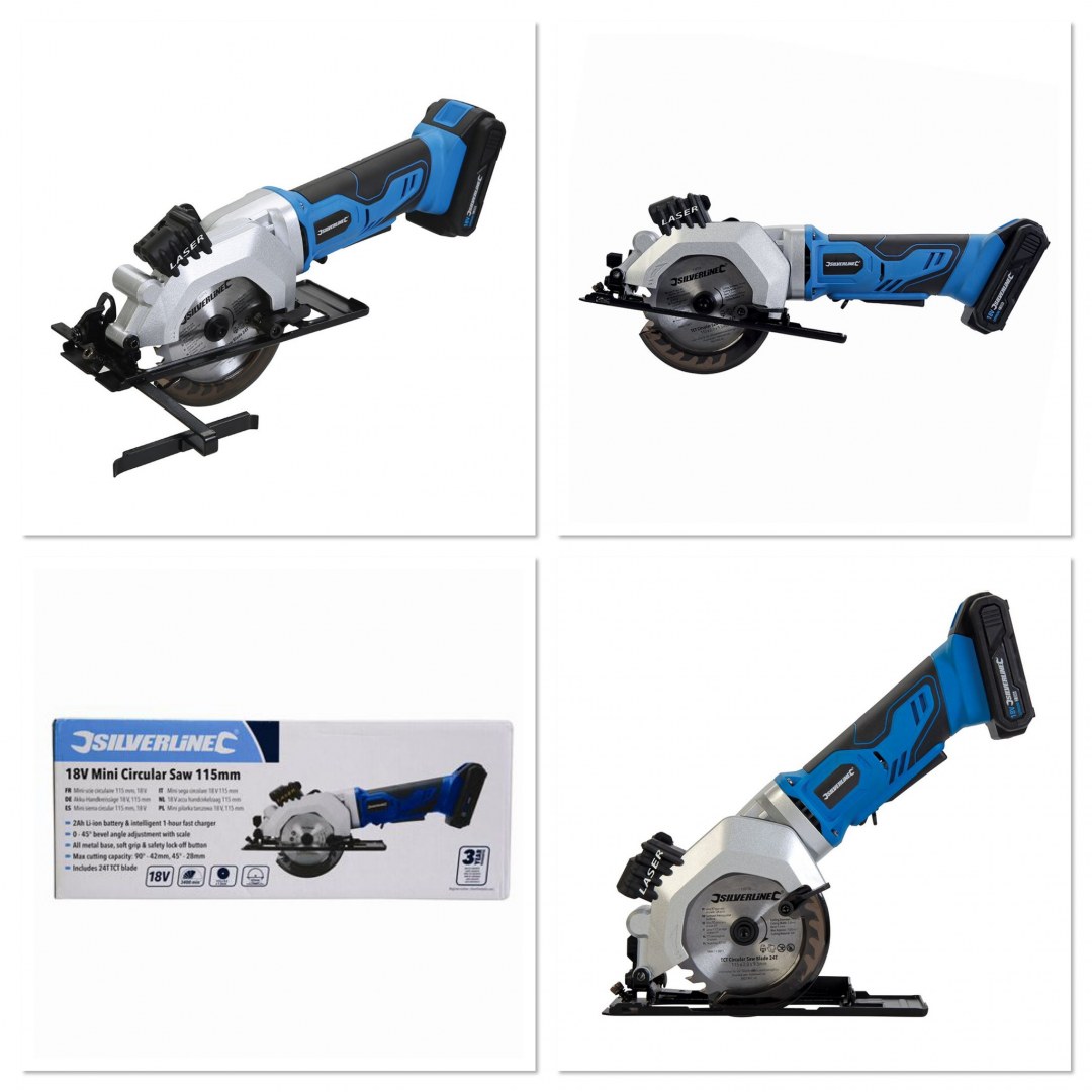 Mini-scie circulaire 115 mm, 18 V 2 Ah --> 30€