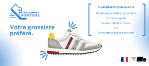 Depuis 13 ans Chaussures-Porthal propose un large choix de chaussure, notre entreprise est basée à Lyon, vous pouvez visiter notre site marchand pour consulter les articles en stock ou par email et telephone pour avoir plus d'informations.