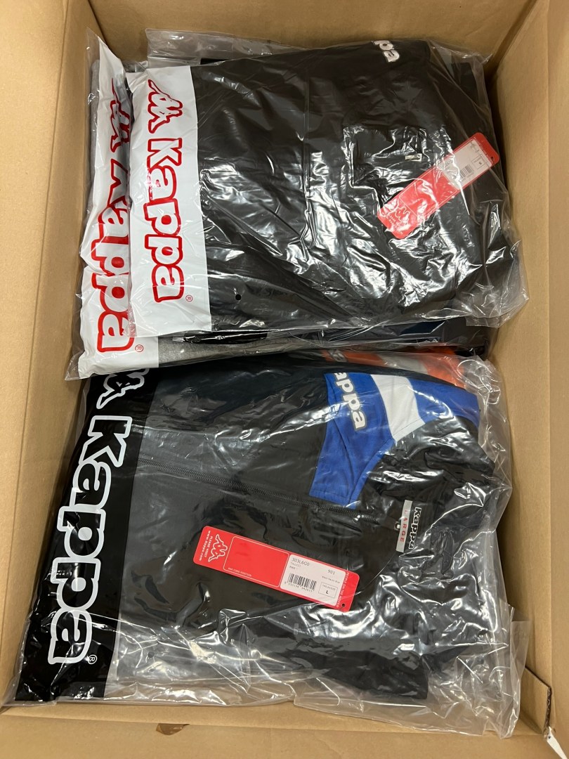 Nous sommes destockeurs depuis 40 ans et proposons actuellement un lot de vêtements pour hommes de la marque Kappa. Ce sont des collections très récentes.